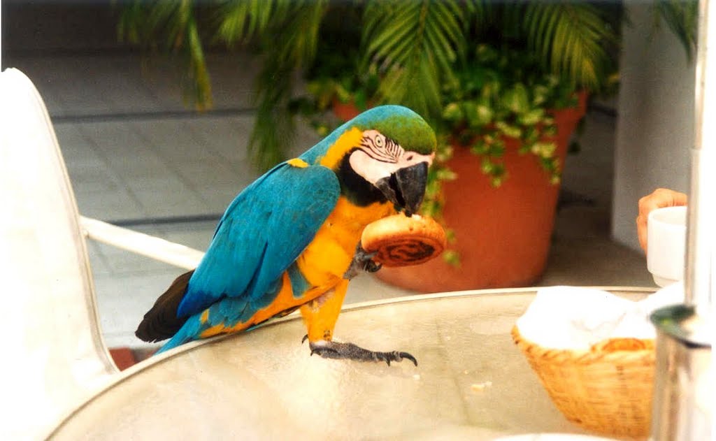 Voici ma contribution : le voleur volant. Ce petit volatile coloré colombien est venu à notre table, a pris un escargot sucré et est reparti comme si de rien n'était (ce n'était pas un "Naschkatze" mais un "Naschvogel") !