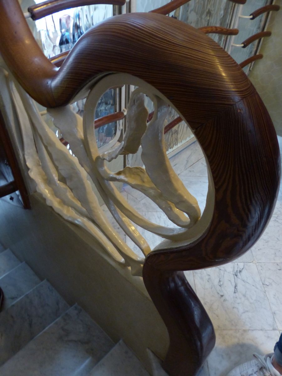 Courbes au pluriel pour toutes celles, plus ou moins marquées, qui apparaissent dans la photo autour de ce joli bout de rampe espagnol et célèbre (Gaudi), pour la rondeur-douceur de celui-ci bien sûr, surtout, mais également pour les chaleureuses et magnifiques veines serpentines de son bois qui invite irrésistiblement à la caresse!