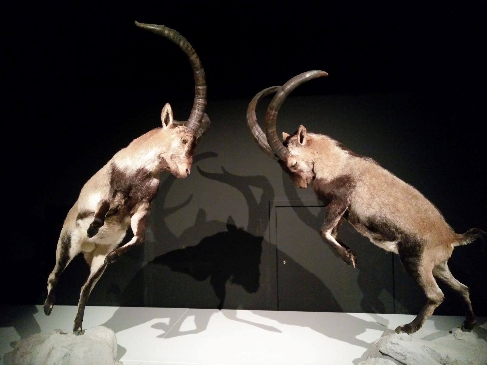 La courbe gracieuse de ces deux bouquetins, figés dans un arc que l'on devine presque parfait avant le choc, accentué par la courbure de leurs cornes majestueuses.