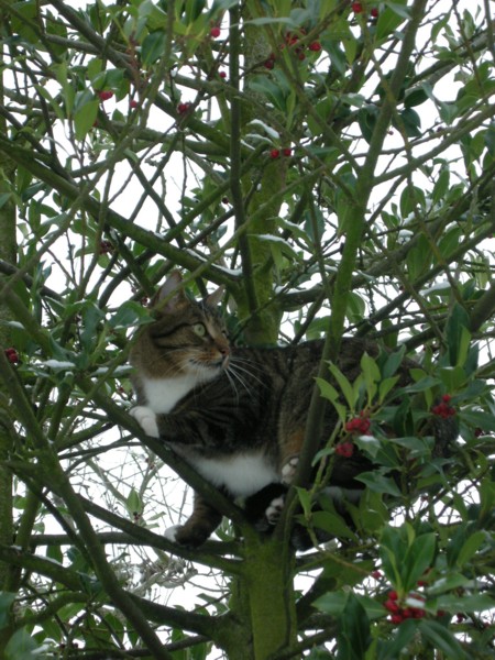 Eh eh eh, va falloir qu'il apprenne à choisir ses arbres le matou !