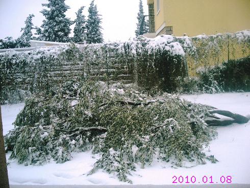 Il est assez rare que la neige tombe en abondance de ce côté-ci de la France, la Provence, et en général ça ne tient pas...mais vendredi dernier , elle est tombée si drue que ça a fait des dégâts : mon bel olivier n'a pas résisté!!! il a été complètement déraciné par le poids de la neige...Pierre va essayer de le remettre sur pied, il me dit que c'est possible , je demande à voir! je ne me console pas de la perte de cet arbre si emblématique du sud...