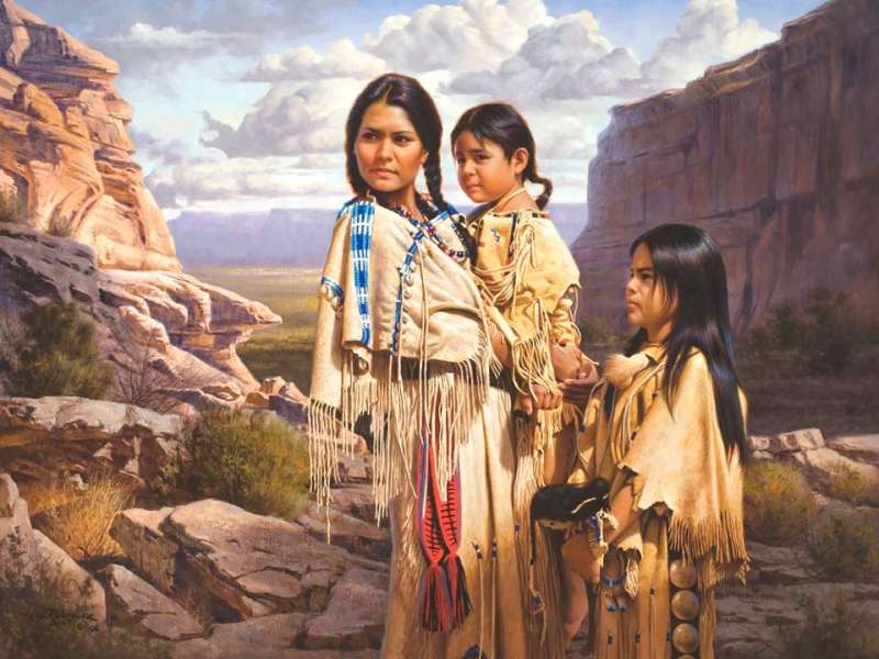 Ses femmes ressemblent plus à des Blanches qu'à des squaws Apaches ou Cherookee ou... autres tribus amérindiennes. Il est très rare que les vêtements amérindiens contiennent du bleu. Et, quand ils en ont c'est plus comme celui-ci que comme celui-là.