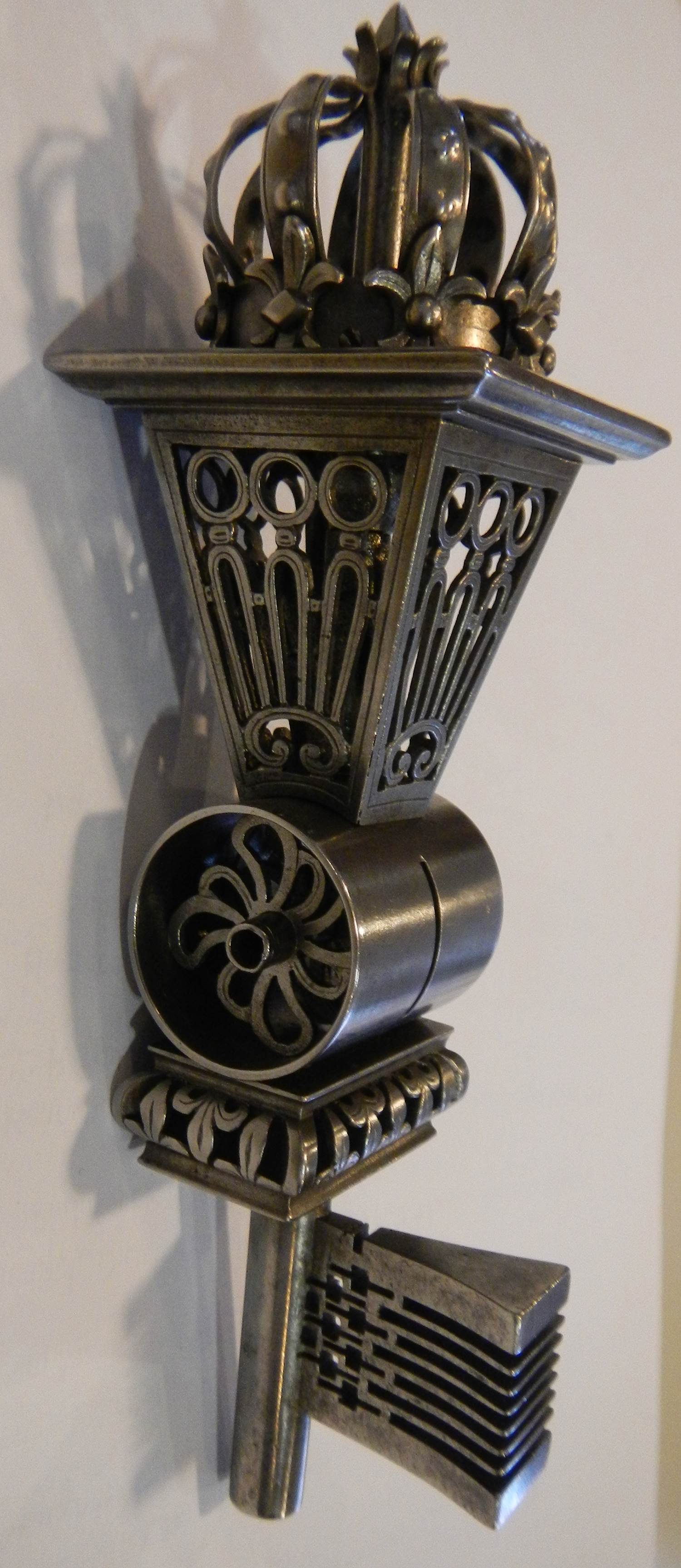 J’ai besoin de votre science. Lors d’un cours de muséologie, nous avons pu choisir un objet sur lequel écrire un travail approfondi. Il s’agit d’une clef de maîtrise à lanterne du XVIIIème siècle, d’origine française. C’est tout ce qu’on en sait. En faisant quelques recherches, j’ai pu apprendre que c’est le genre d’œuvres que les apprentis devaient confectionner afin d’entrer dans le cercle des « maîtres ès arts ». Cette tradition a perduré et se retrouve chez les Compagnons du Devoir, qui puisent leurs origines des guildes du moyen âge.