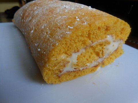 Déroulez le biscuit, garnissez le du mélange fromager et roulez le à nouveau.