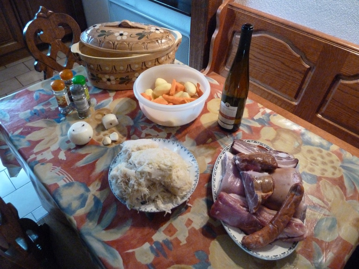 Ahhh, mince j'ai du zapper, mais pas grave, c'est un plat qui se mérite, qui sait se faire attendre, et déguster non pas en avril mais en automne/hiver, surtout avec la choucroute nouvelle, moins acide :D