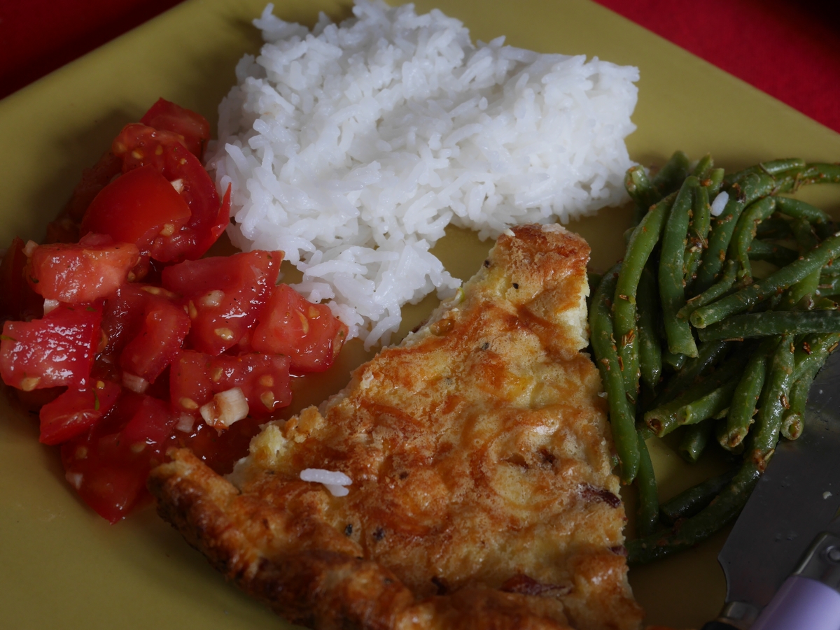 Je suis contente, mes premiers essais avec mon four à gaz ont été catastrophiques mais je le dompte petit à petit. Hier j'ai réussi un cake, aujourd'hui une quiche, il y a du progrès !