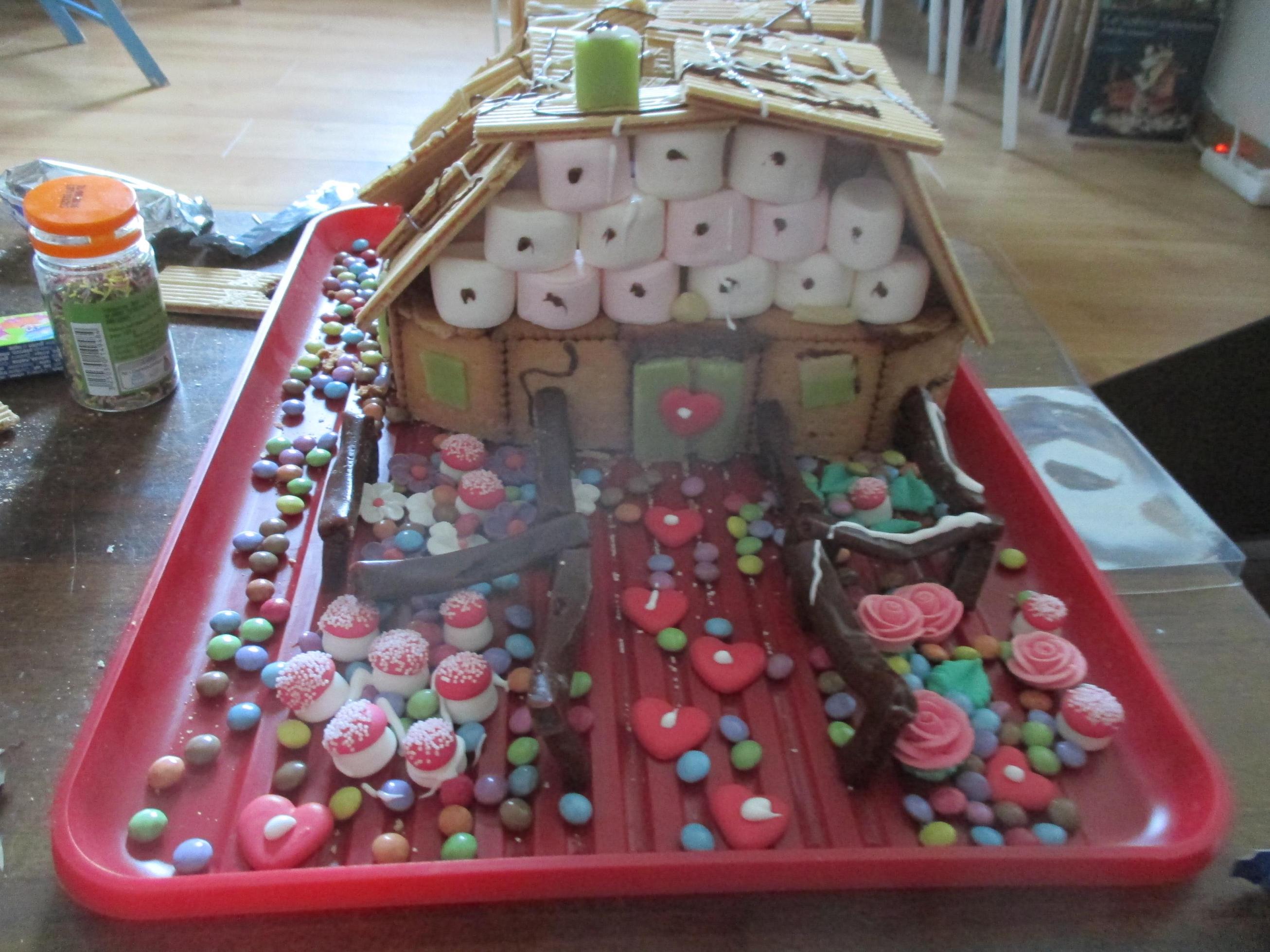 J'ai voulu faire la maison en pain d'épice du conte Hansel et Gretel. Le résultat n'est pas à la hauteur de ce que j'avais imaginé mais on c'est bien amusé.