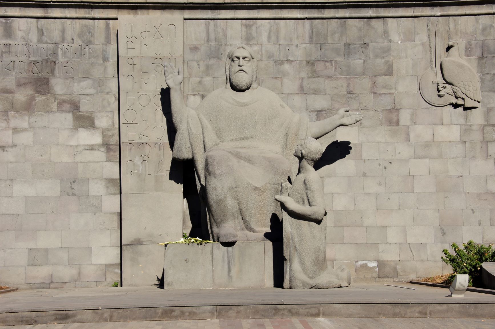 Derrière lui on peut voir un escalier géant, appelé Cascade, qui est une création récente financée par le milliardaire américain d'origine arménienne Gerard Cafesjian. Sous l'escalier se trouve des salles d'expos d'art contemporain.