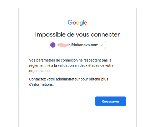Salut Lat, doit-on suivre ces instructions sous peine de ne plus pouvoir utiliser notre email ?Votre domaine G Suite lokanova.com commencera à appliquer la validation en deux étapes le 30 juil. 2021. Ce processus renforce la sécurité de votre compte en vous demandant de présenter un deuxième facteur en plus de votre nom d'utilisateur et de votre mot de passe lorsque de la connexion. Suivez ces étapes simples pour activer la validation en deux étapes. Sinon, vous ne pourrez plus vous connecter à votre domaine après le 30 juil. 2021.