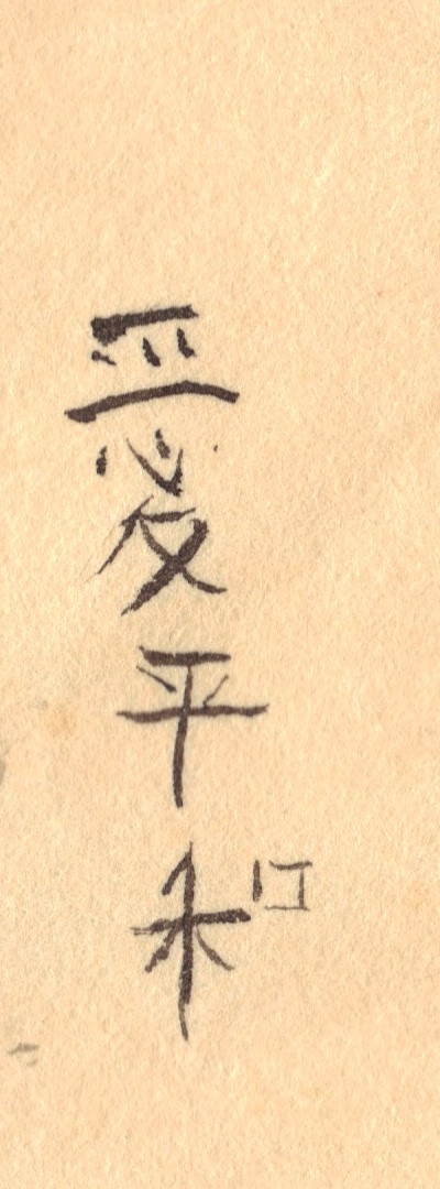 Appreciate your help ... thanksMaïwenn wrote:The first one is 愛平积 I think. The last character is not finished, and the sentence mixes traditionnal and simplified characters... It could mean something like "love lasts long"