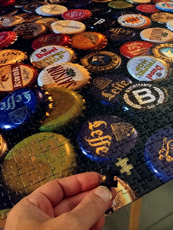 En haut de mon podium, malgré le coupe-ongle négligé ("faute" avouée... :lol: ) se trouve la proposition de Lat: la main c'est quelque chose qui me touche (!), auquel je suis sensible; et puis les puzzles j'adore ça (même si pas le temps de m'y consacrer)! Son idée je m'y retrouve donc bien et je m'en veux presque de ne pas l'avoir eue, la mise en scène m'aurait demandé moins de temps/manoeuvres que la table de ping-pong!😅