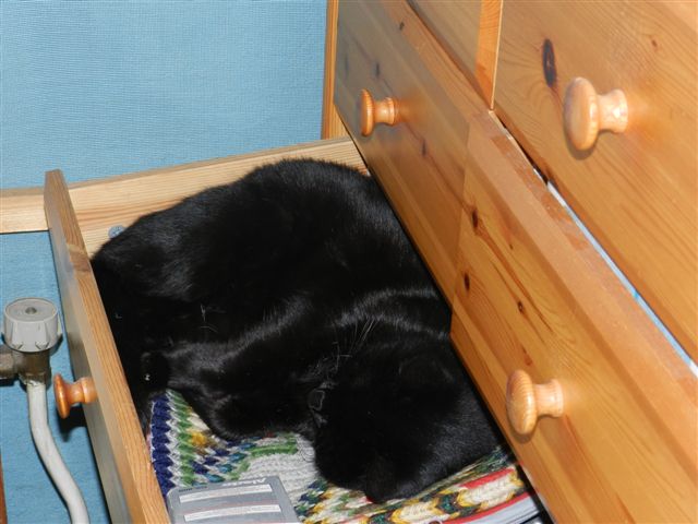 l'hiver, dure période pour les katz... 15 heures à dormir à côté du radiateur ou du poêle à bois, 1 heure à bouffer, 2 heures à se bagarrer pour avoir la place, 2 heures de pipi dehors quand même, mais il me reste 4 heures... faut que je leur demande... ah oui, 1 heure à quémander tout et n'importe quoi