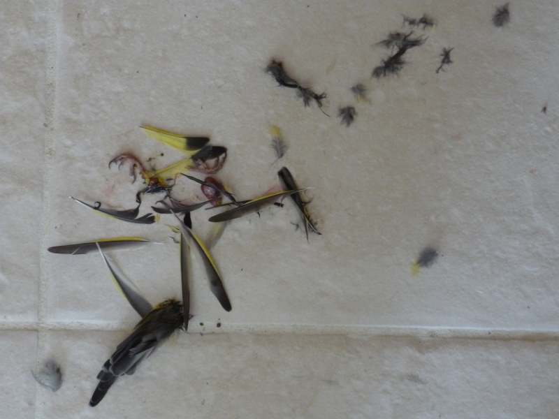 Bon, parfois il y a des victimes, comme la mésange sur le pas de la porte, dernièrement :( ... Mais sinon il y a beaucoup de passage de bestiaux en tous genres! Tant qu'ils restent dehors ça va, y sont chez eux! :)