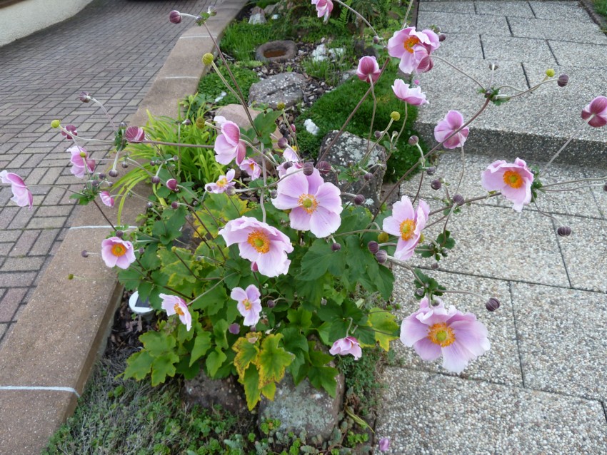 difficile de connaître la raison exacte du problème, le printemps exceptionnellement sec a stressé pas mal de plantes, il peut il avoir des effets tardifs, La plante est une anémone du Japon (Anemone hupehensis A. tomentosa ou leurs hybride A. x hybrida, ici peut être A .tomentosa 'Robustissima') ça ne vient pas de graines du voisin, par contre un petit bout de racines arrive facilement à refaire une belle plante