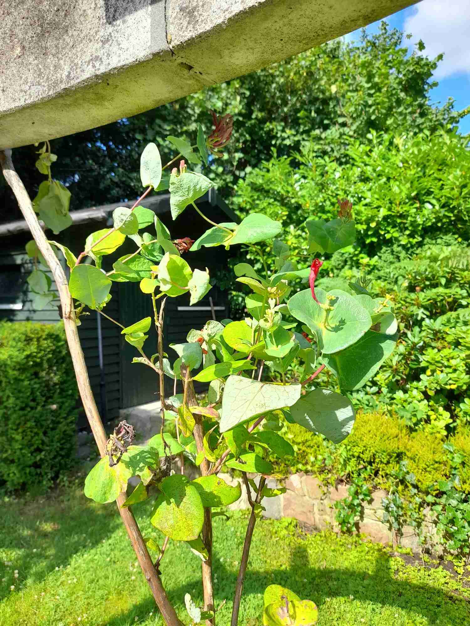 Je ferai une photo aussi du "chèvrefeuille" qui est derrière la pergola. C'est mon père qui a dit que c'était ca, mais ca ne me dit rien.. J'en ai eu un, je ne me souviens pas que ca ressemblait à ca.