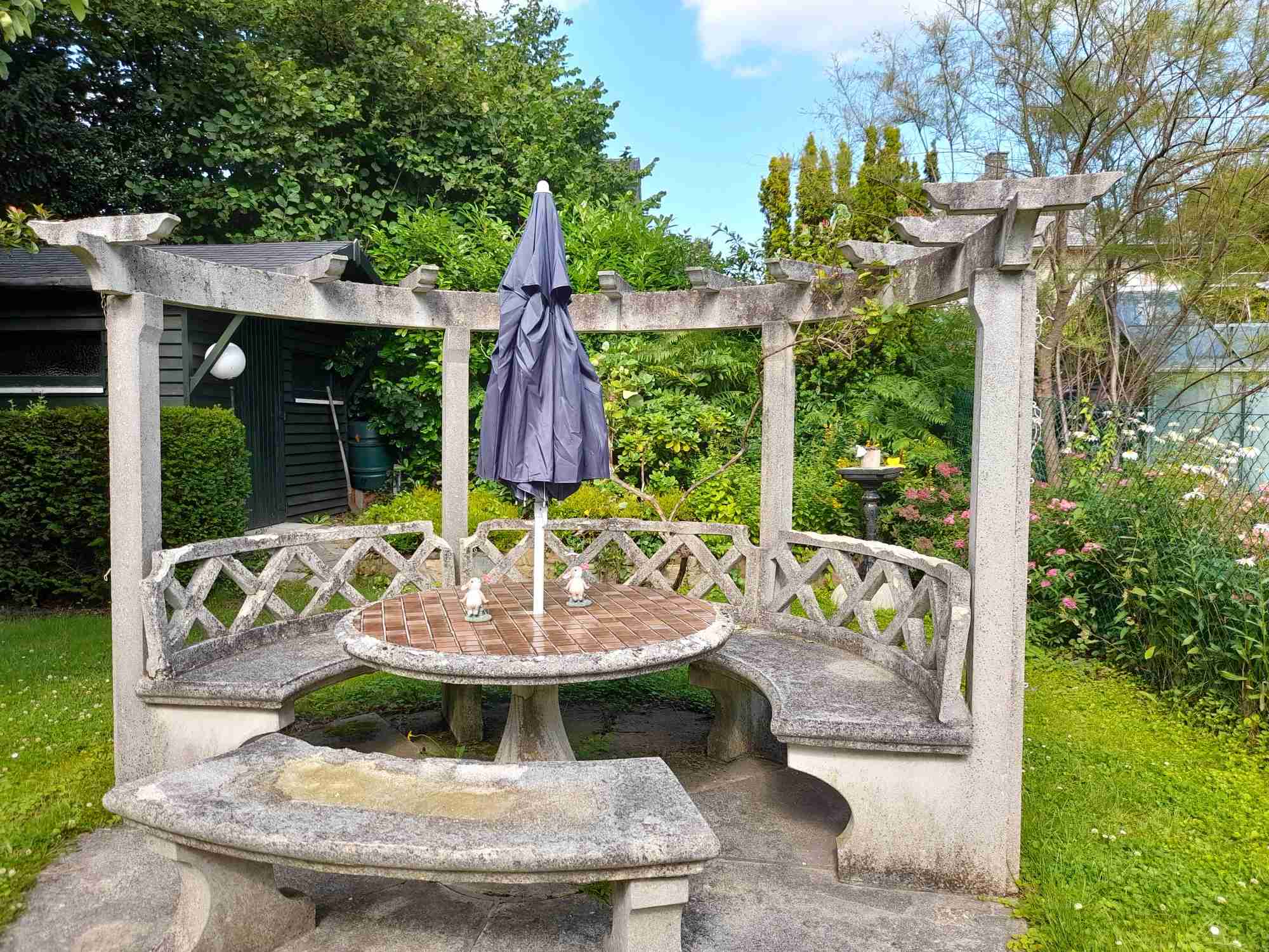 La spirée, ah oui c'est ça. Je me disais bien que cette plante ne m'était pas inconnue ! Le chèvrefeuille, j'ai aussi des doutes. La fleur, prise seule, ressemblerait presque à celle de la bignone, mais pas son port, ni les feuilles... Ces feuilles sont vraiment étranges ! Le prunier, oui, il a du vécu on dirait... Mais bon, mes parents ont eu longtemps un reine-claude, il était tordu, biscornu comme pas possible, je lui avais cassé une belle branche en grimpant dessus, mais il allait toujours et donnait beaucoup de fruits ! Moi je dirais, laisse-le tranquille et attends de voir cet été ce qu'il donne, on y est bientôt. Et pour ta pergola, avec ce style-là, wow ! C'est sûr qu'une bignone y sera belle, mais franchement, moi, j'y vois d'emblée des rosiers grimpants :love: