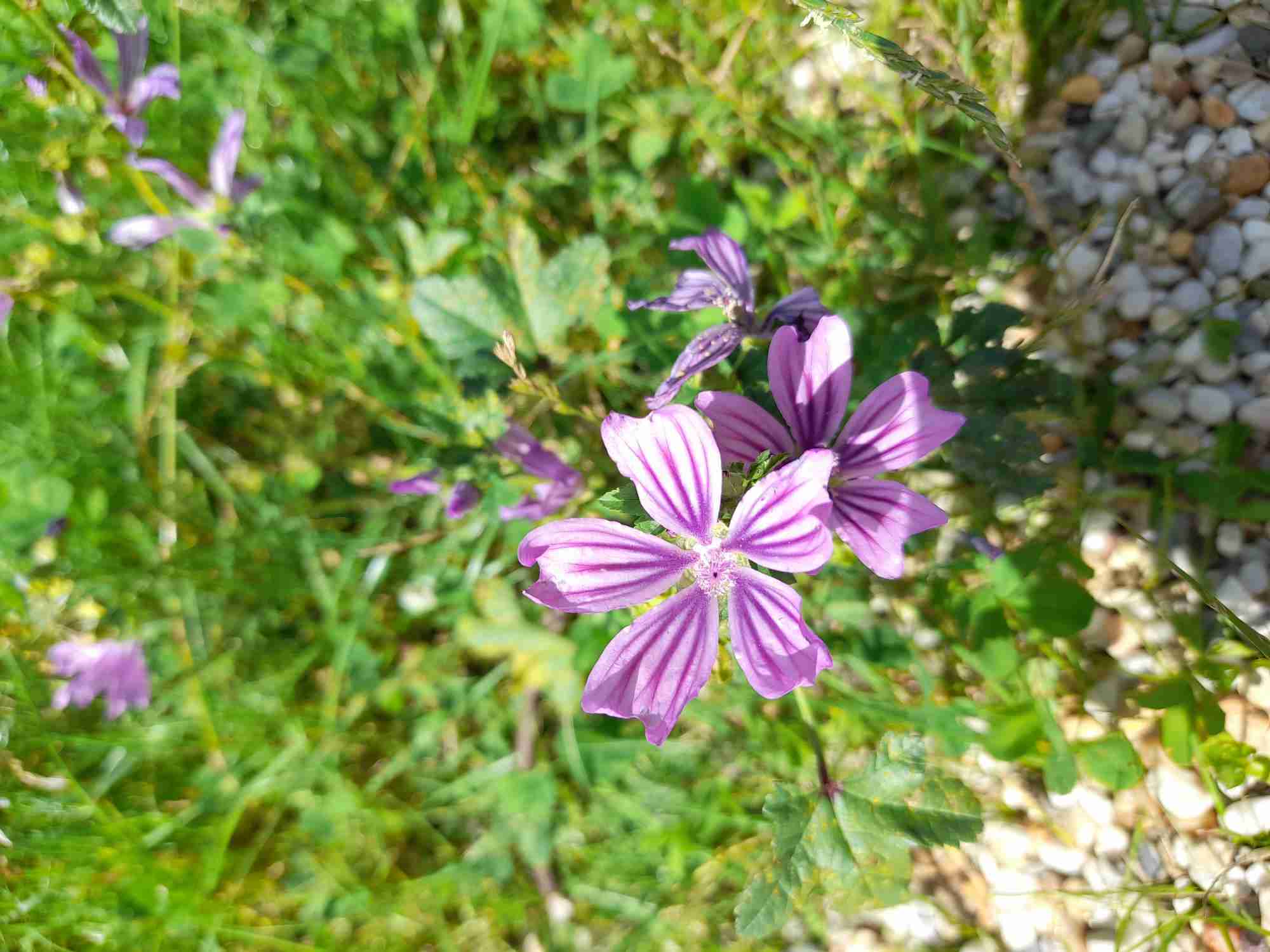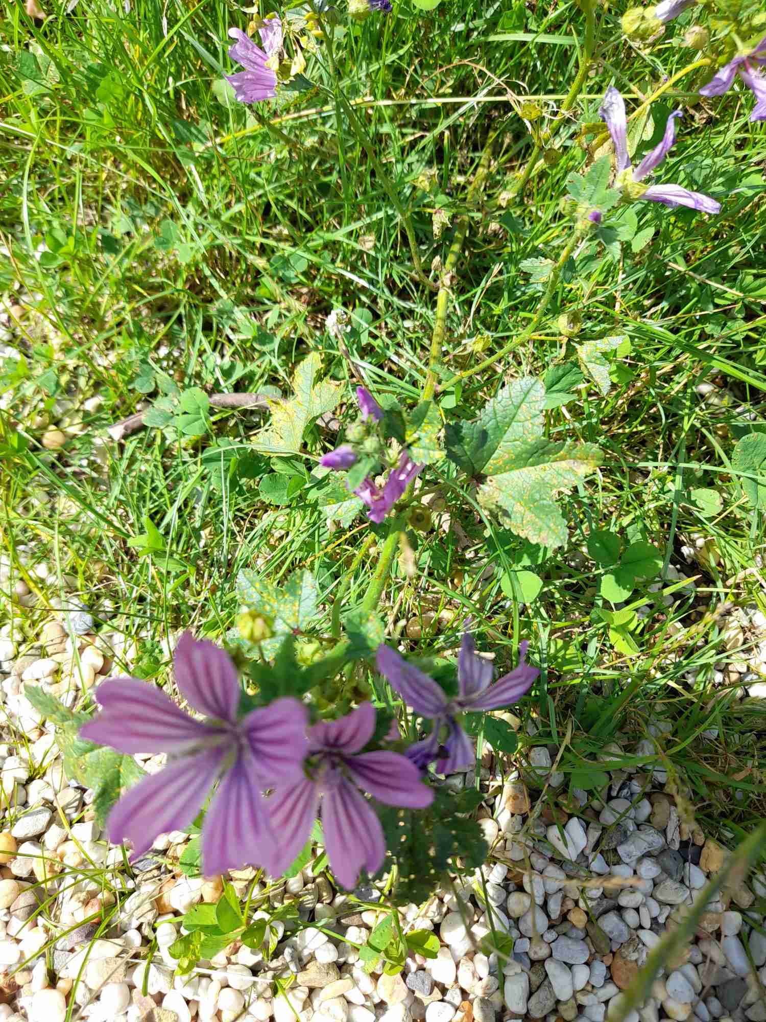Concernant la plante du parc, c'est très possiblement une mauve sylvestre!