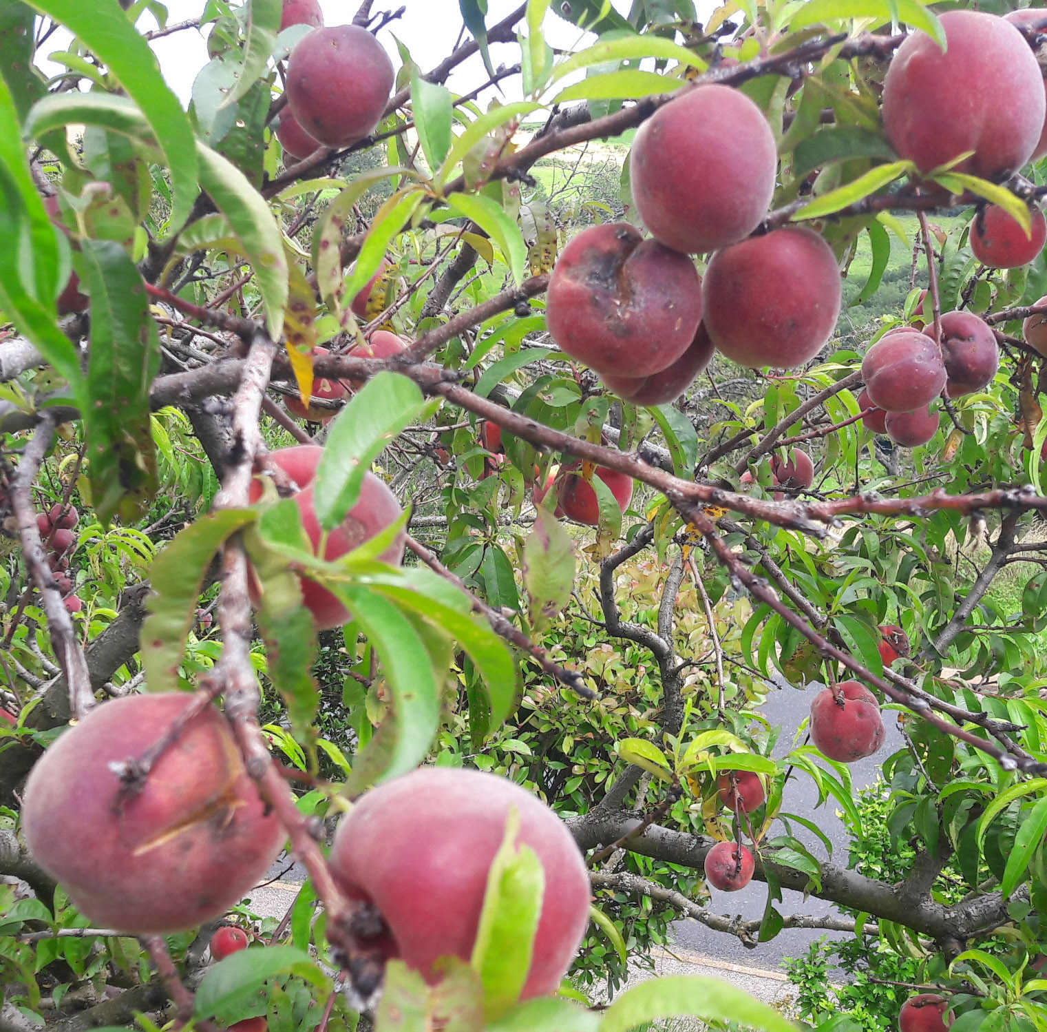 Voici une photo de mon pêcher dont les fruits qui ne sont pas encore murs présentent des tâches noires, savez vous ce que c'est et ce que je peux faire ? Merci.