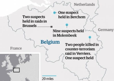 On parle de la Belgique avec les arrestations et assauts qu'il y a eu lieu jeudi dernier et du coup, on montre une carte pour expliquer un peu...