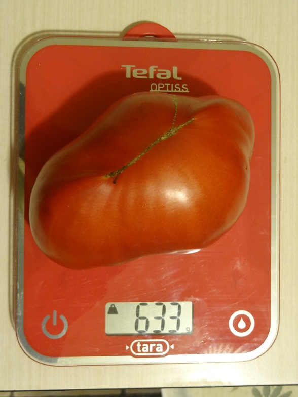 Mais dis-moi Ankhs, tu as la main bien verte toi! quelle belle tomate que voilà, plus de 800 g...de quoi vous faire 2 ou 3 belles salades..