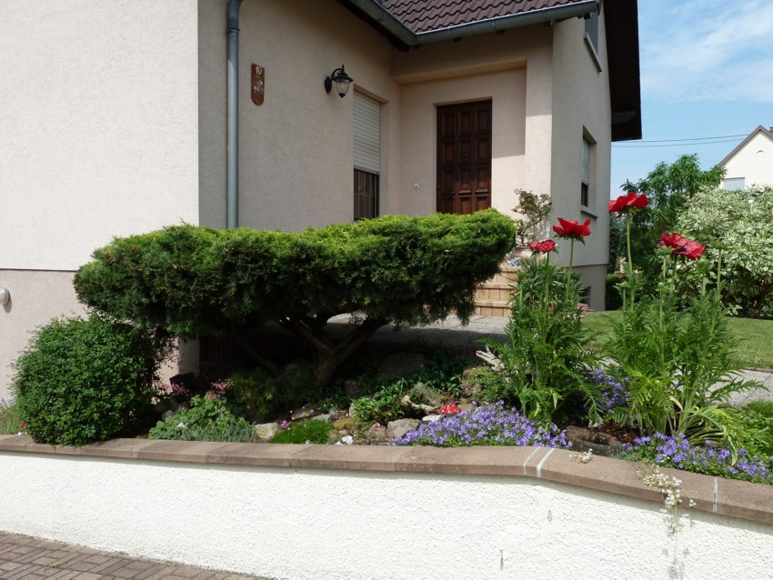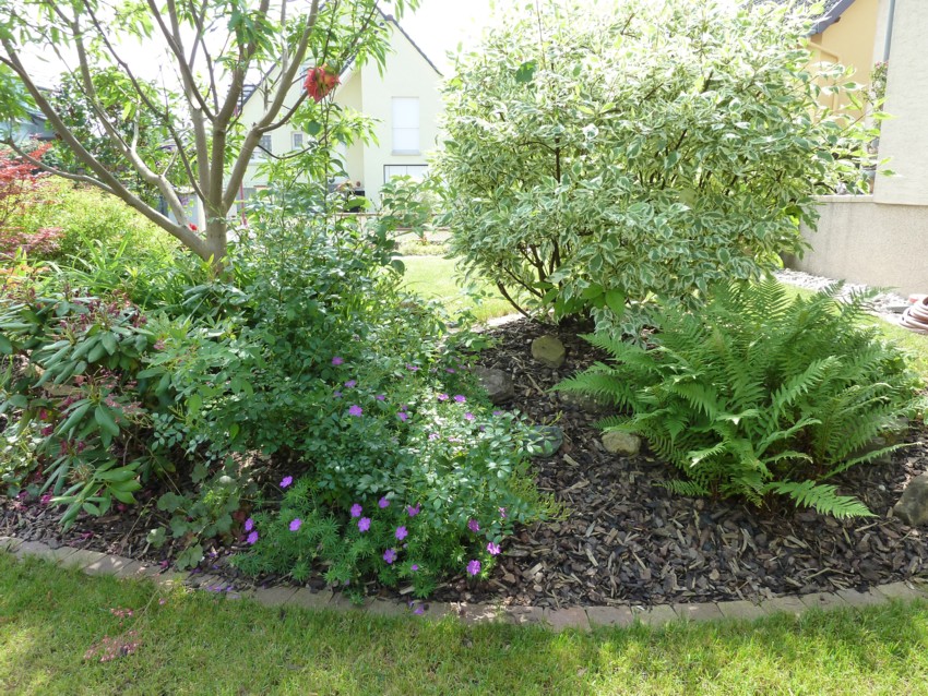ce que j'ai trouvé de pas mal est les copeaux d'écorce, on garde l'humidité, pas de mauvaises herbes, les bordures en pavés aussi, facile pour la tondeuse, moins d'entretien