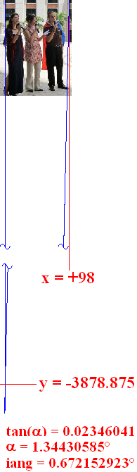En effet, en prenant la projection linéaire des colonnes extrêmes (extrême gauche et extrême droite, sans vouloir me mêler de politique européenne : on a déjà assez de problèmes avec la nôtre!), on voit qu'elles ne sont pas parallèles, mais présentent un angle de 0° pour la gauche et de 1.34430585° pour celle de droite (indiquant que la droite est plus biaisée que la gauche, toujours sans intention politique Image ). Si si : voici les mesures : vous pouvez vérifier! Au dix-millième de poil j'vous dis!