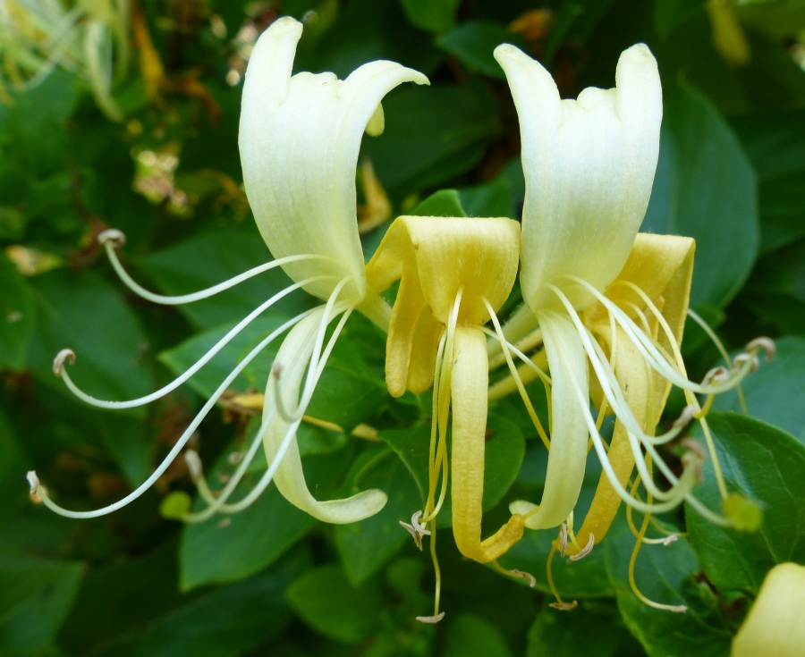 Une nouvelle venue chez nous... On nous l'a donnée, j'ignorais ce que c'était, mais maintenant qu'elle a éclos, j'ai vérifié sur Internet et de toute évidence, c'est un chèvrefeuille...
