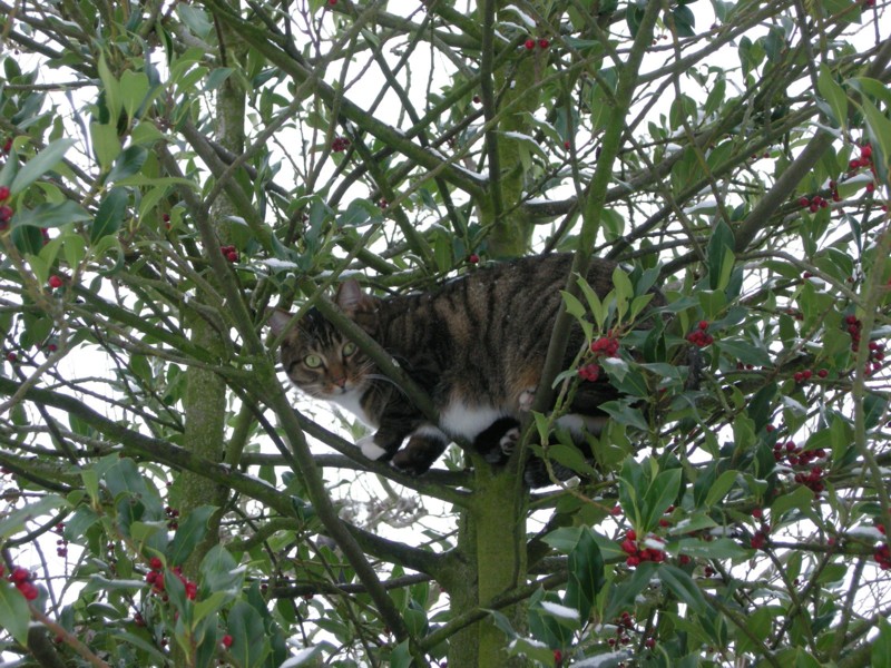 Eh eh eh, va falloir qu'il apprenne à choisir ses arbres le matou !