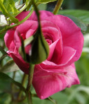 La rose jaunit rien qu'à l'idée de devoir s'ouvrir et semble ici bien hésiter: