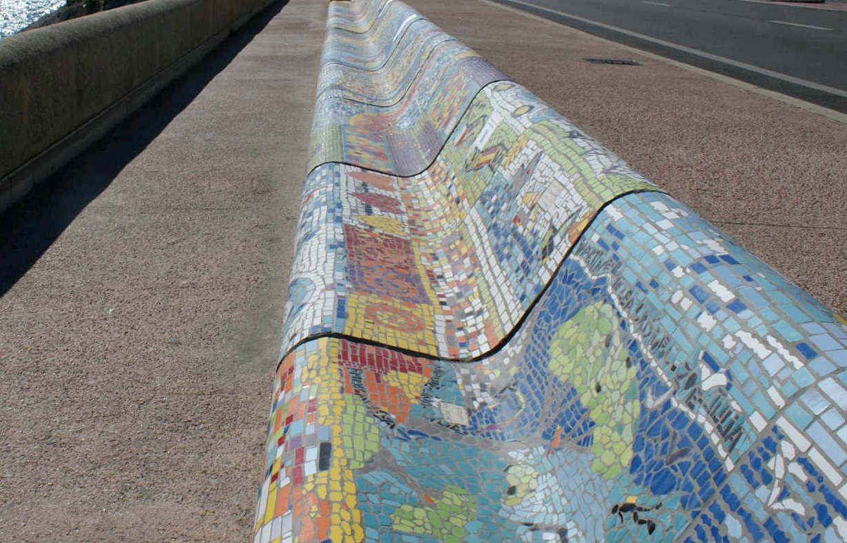 Il s'agit-là en effet du plus long banc du monde en partie recouvert de mosaïque, il est situé sur la Corniche Kennedy à Marseille...de là, vue imprenable sur la méditerranée garantie !!