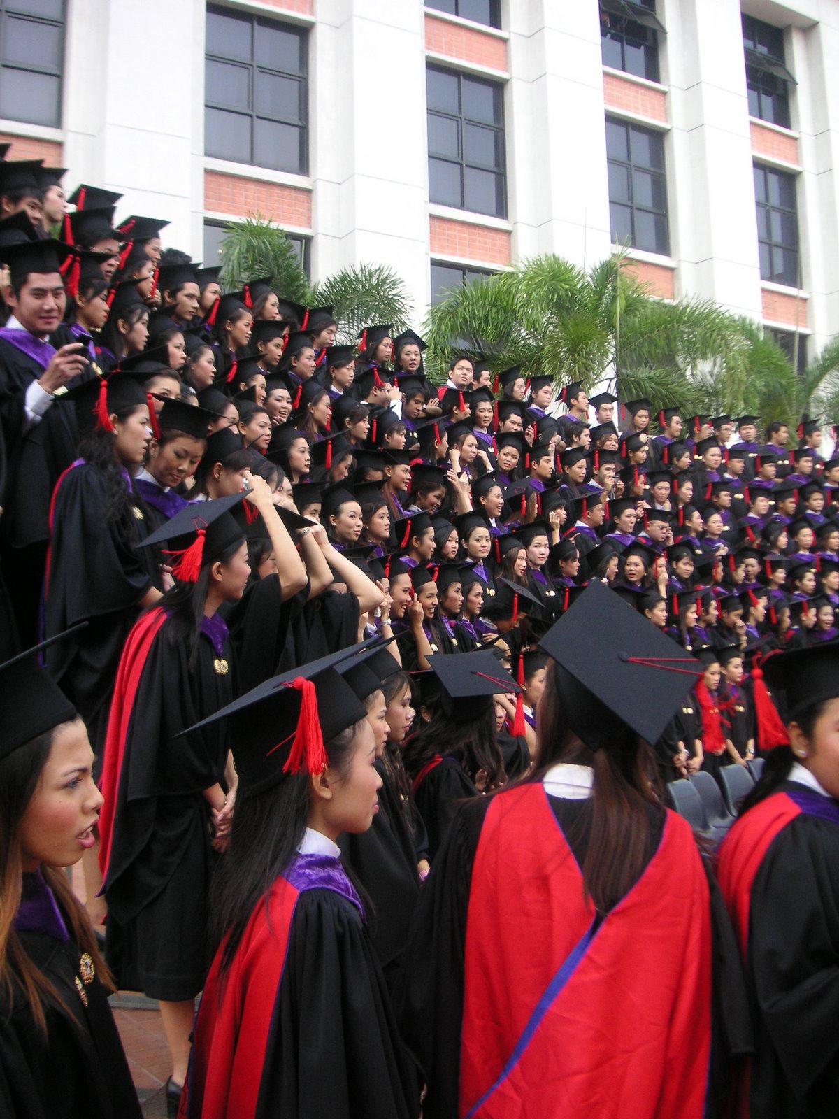 Comme Beaumont a proposé une photo traitant du bouddhisme, je propose un autre domaine. Les cérémonies de remise en diplômes thaïes sont longues et très pompeuses. Ici, c'est un moment un peu plus décontracté, la matinée réservée aux photos. Grâce à leur col mauve, on reconnaît les licenciés en lettres.
