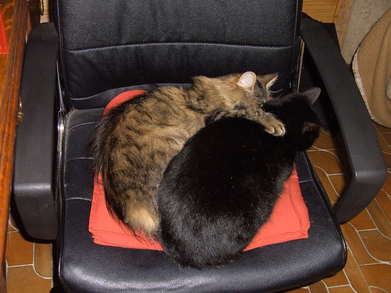En fait, elle a un territoire beaucoup plus étendu qu'Harmaa, qui ne quitte guère les abords de la maison à priori, et donc, ça ne pose pas de problème. Et puis, elle n'a quasiment jamais été seule: sa mère au début et puis Valko, un petit mâle de 3 mois que j'ai gardé 2 ans (sal...rie de voitures :( ), et puis celle-ci. Elle a d'ailleurs achevé l'éducation aussi bien de Valko que de Harmaa.