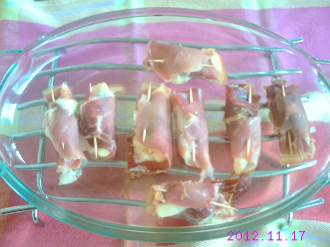 faute de jambon cru on peut utiliser des tranches très fines de poitrine fumée... :D