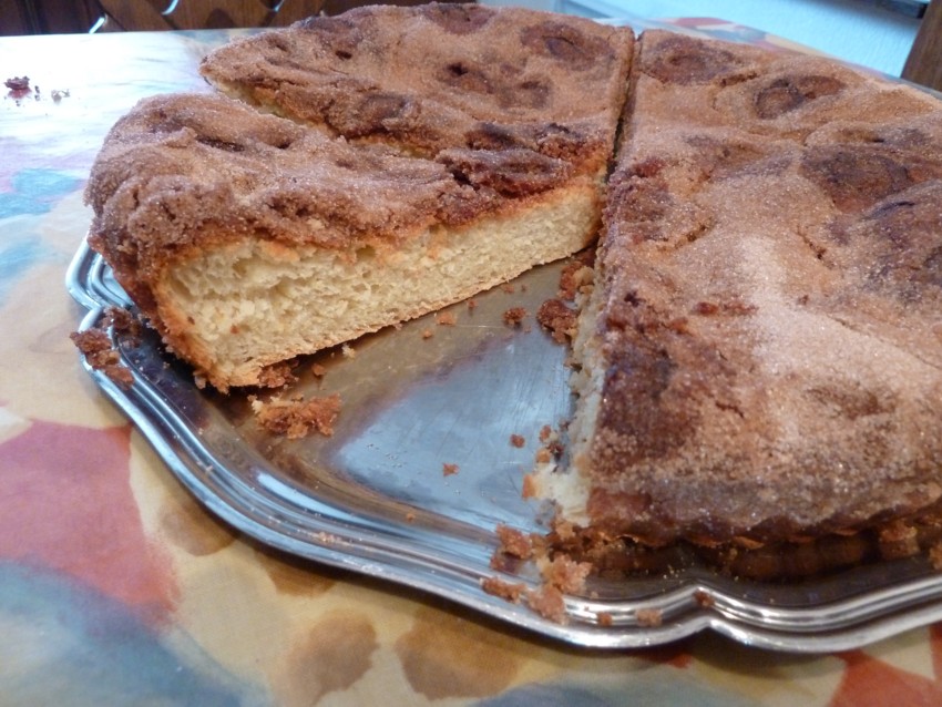saupoudrer d'un mélange de sucre cristal dilué dans un peu de schnaps (kirsch ou quetsches)