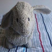 Voici ma contribution : cette brebis s'appelle Pepa et elle m'accompagne depuis bientôt 38 ans. Elle m'a été offerte par le meilleur ami de mon père le jour de la naissance de mon (premier) frère. J'ai dû il y a bien longtemps lui recoudre son oreille gauche, laquelle est restée depuis "en l'air" (ce qui est fort pratique lorsque je lui raconte des secrets).