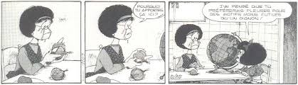 Mafalda, que j'ai lue toute mon enfance, en en comprenant qu'après coup certains strips, trop près des années 70 pour mon enfance des années 80, mais dont la douce révolte me convenait.Un «génie», titrait mercredi le quotidien argentin La Nación, saluant la mémoire du créateur de Mafalda, mort quelques heures plus tôt. La petite fille de papier, connue pour son regard désabusé sur le monde adulte et traduite dans le monde entier, fêtait cette semaine ses 56 ans. Cette icône de la bande dessinée humoristique continuera de souffler les bougies. La nouvelle de la mort de Quino a été accueillie avec émotion dans son pays mais aussi à l’étranger, où Mafalda et sa bande de copains ont accompagné des générations de lecteurs.